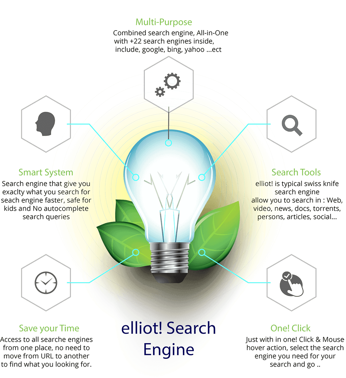 elliot! Projets de moteurs de recherche, a été fondé par M. Khalid Abes, diplômé d'un Master en Communication et Traitement Numérique de l'UBMA en Algérie, en 2012 avec un design simple réalisé comme prototype qui reflète l'idée principale d'elliot! qui combine tous les moteurs de recherche en un seul endroit, ce qui fait d'Elliot le premier Moteur Polyvalent au monde